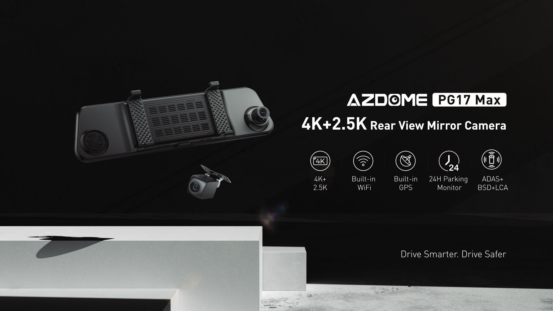 This AZDome PG17 Max is a mirror dashcam from AZDome with unique features that make your journeys much more pleasant. The large 12-inch touchscreen LCD acts as a digital rear-view mirror, and the front and rear cameras record everything around the car in detail.