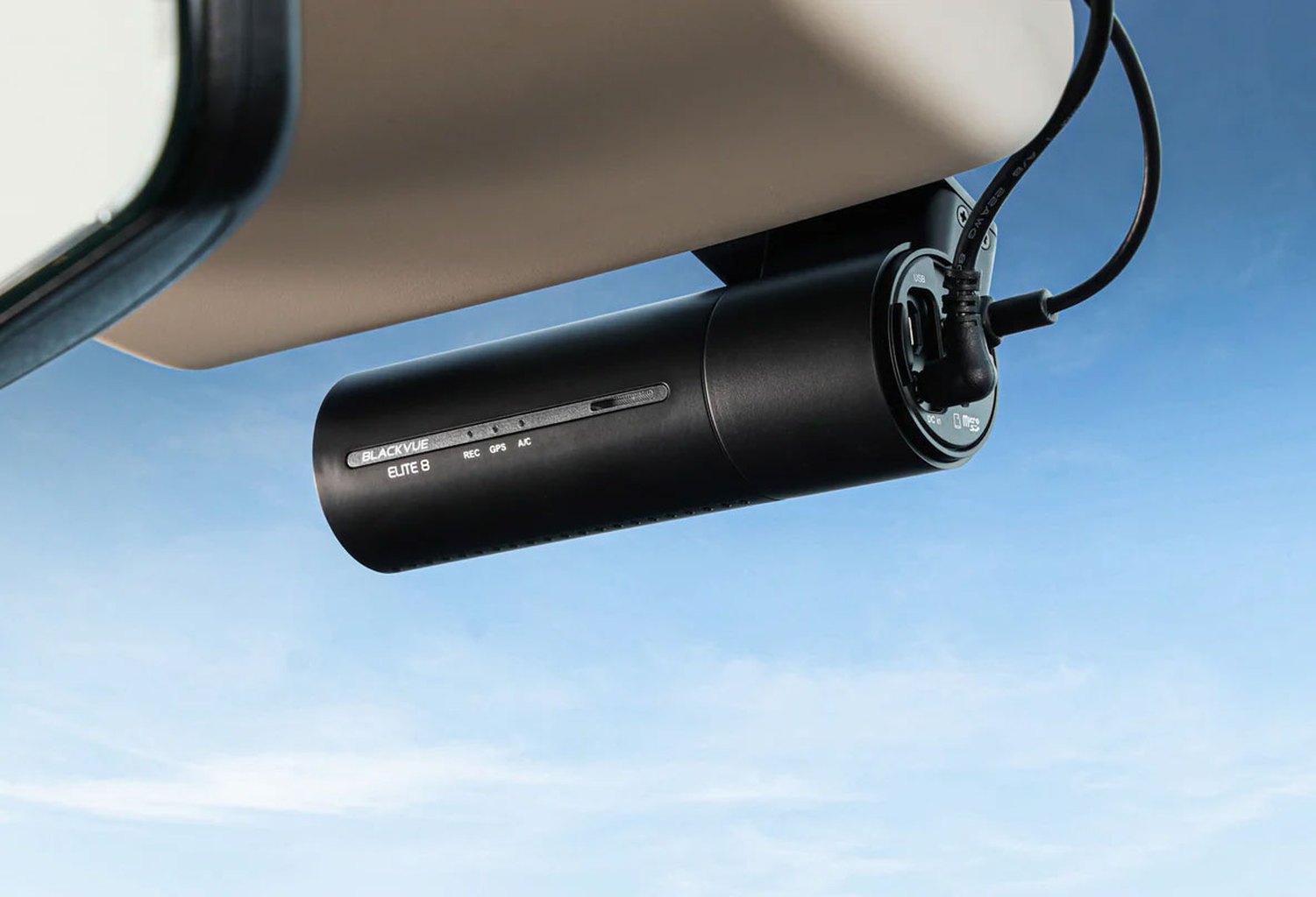 The BlackVue Elite 8 comes standard with a 4.5-metre USB power supply with a separate cigarette lighter plug. To use parking mode, the BlackVue CH-3P1 or BOC-300 OBD2 hardwire kit is required (see accessories).