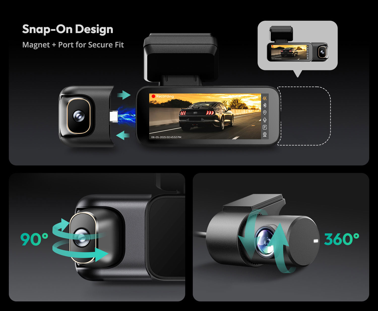 The unique feature of this Botslab G980H Pro 3CH dashcam is its three separate cameras. The main unit, which is mounted on the windscreen, is equipped with a 4K camera that films the road. On the side, there is an interior camera that can be positioned in all directions. This makes the G980H Pro 3CH the ideal dashcam for parking security for your car.