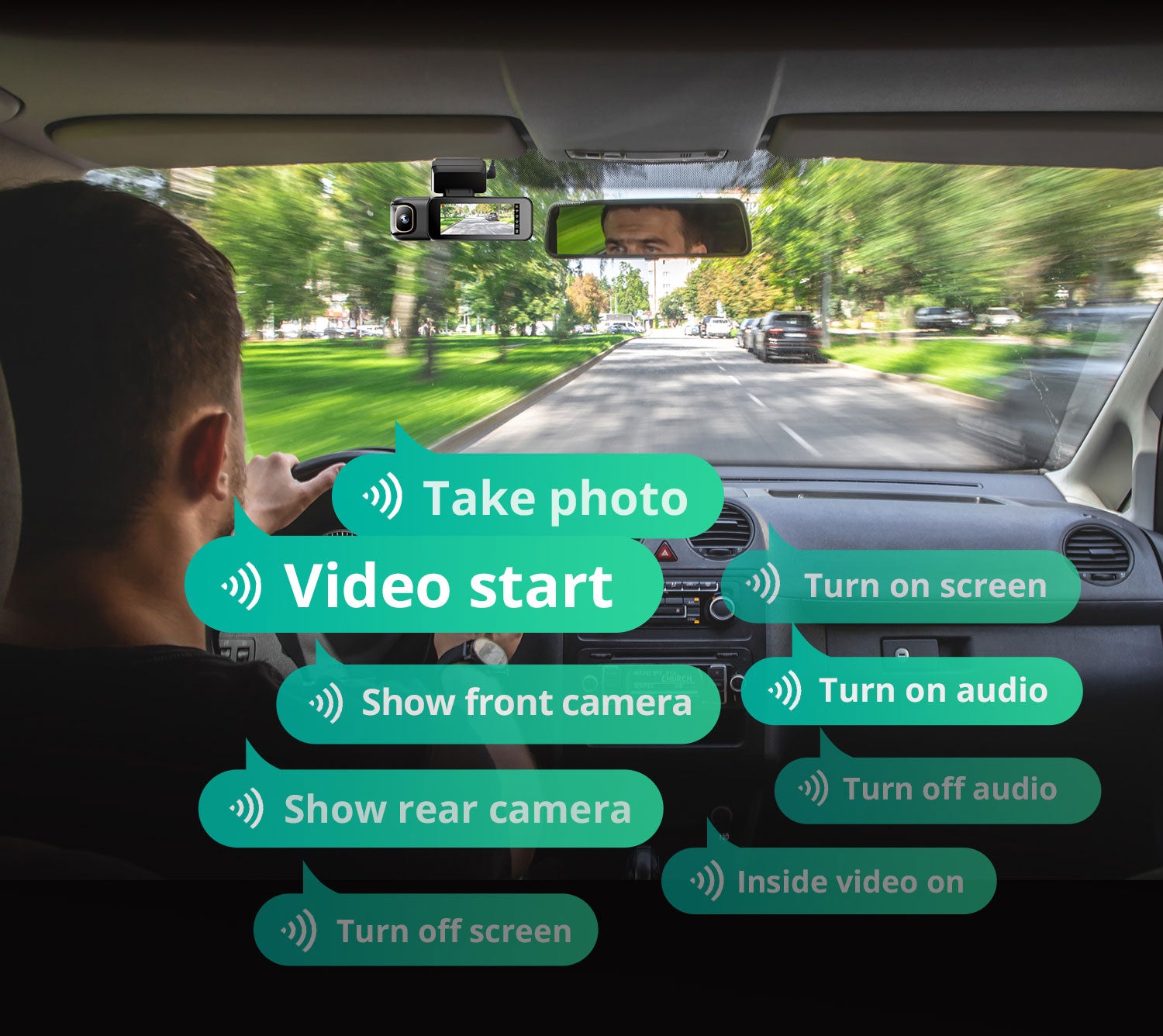 The dashcam can be operated by means of (English) voice control. The following actions, among others, are supported: