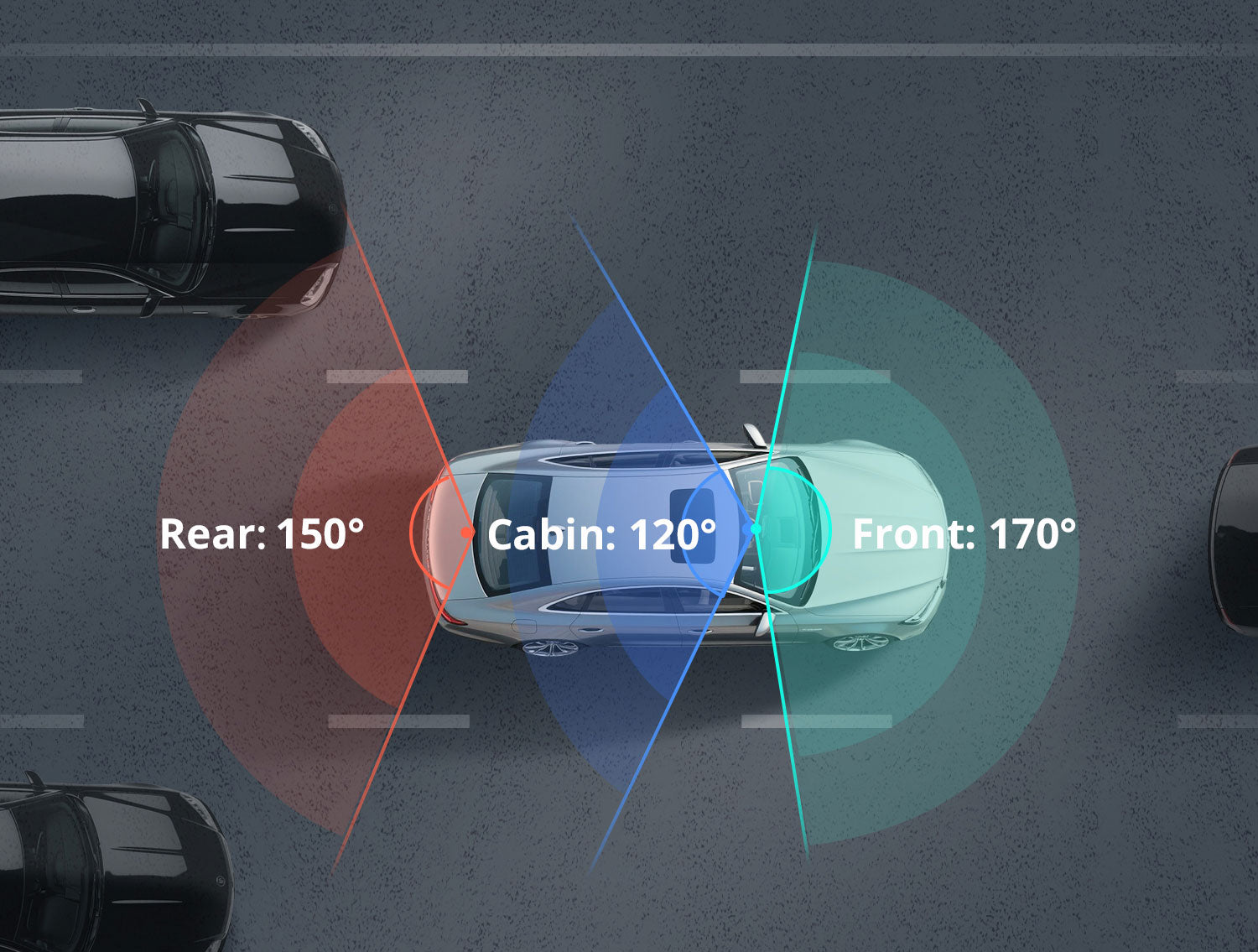 This G980H Pro 3CH 4K Wifi GPS has a 170-degree wide-angle lens at the front and 150˚ at the rear. This allows a large area around the car to be recorded, ensuring that every situation is captured. The side cameras have a viewing angle of 120˚.