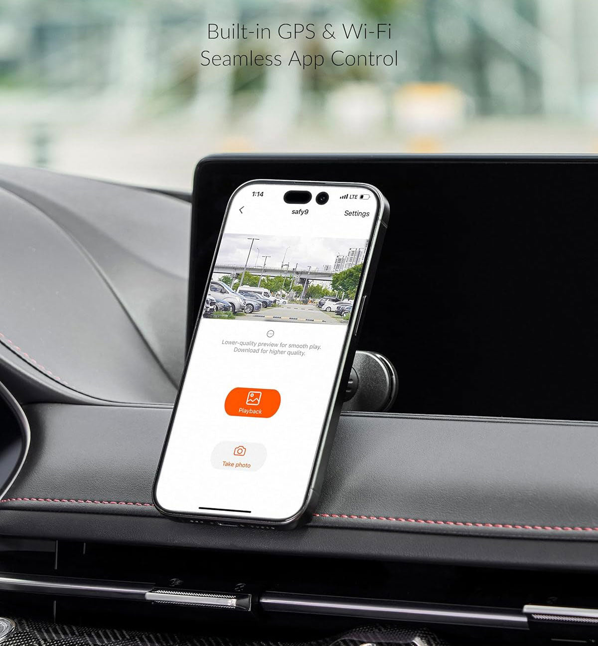 De SAFY9 filmt aan de voorzijde in haarscherpe Ultra HD 4K resolutie en aan de achterzijde in FullHD. De Sony STARVIS beeldsensor zorgt voor heldere, gedetailleerde en contrastrijke beelden, zowel overdag als ’s nachts. Kentekens, verkeerssituaties en details rondom het voertuig blijven goed zichtbaar in alle omstandigheden.